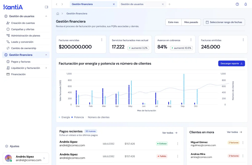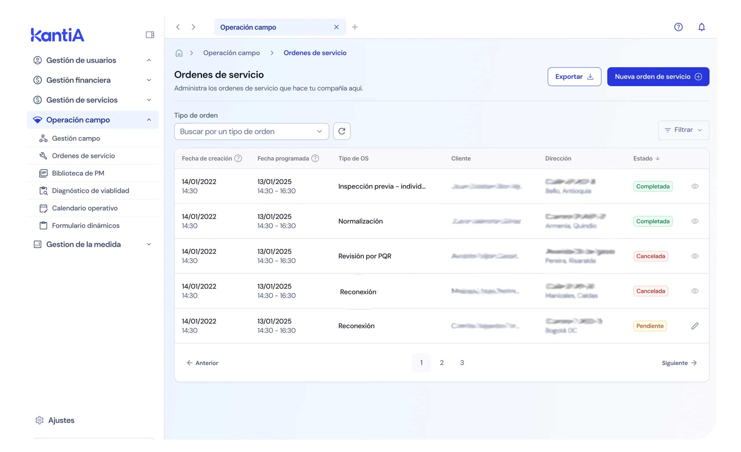 KantiA está dirigida a empresas de servicios públicos y organizaciones que gestionan medición y operación en campo, como comercializadoras de energía, operadores de redes y entornos que requieren submedición (centros comerciales, complejos empresariales, proyectos inmobiliarios, entre otros). Nuestra plataforma les permite mejorar la trazabilidad, reducir tiempos operativos y lograr eficiencias reales en sus procesos técnicos y de campo.